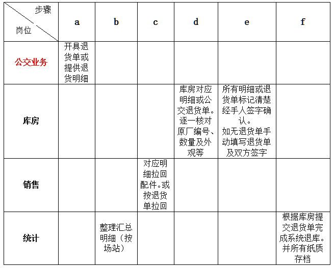 4. 品牌中心库传递由部门总监及中心库管理公司总经理同意后的配件明细对接仓储总监-统计进行大计划标准的入库标准进行批量退库。