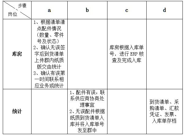 3.计划根据到货清单,将配件明细录入配件系统并完成货位匹配,发到仓储QQ对接群。